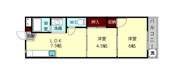 DK 7.5帖/洋室 4.5帖/洋室 6.0帖/0.0帖/0.0帖/0.0帖/0.0帖/0.0帖/0.0帖 - 向き