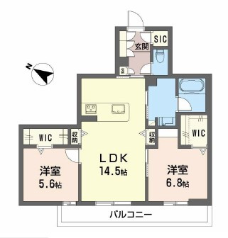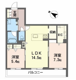 LDK 14.5帖/洋室 7.3帖/洋室 5.4帖 - 向き