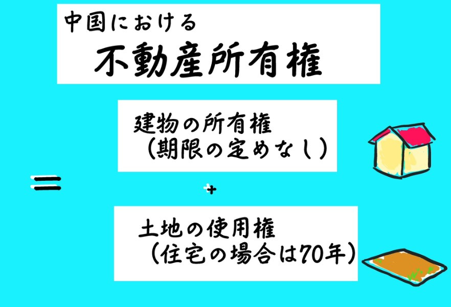 中国の全ての土地が国家所有又は農民の集団所有に属するとされています。