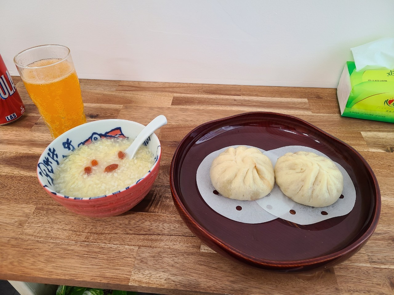 今回はメニューの左下にあった玉子スープと肉まんを注文してみました。