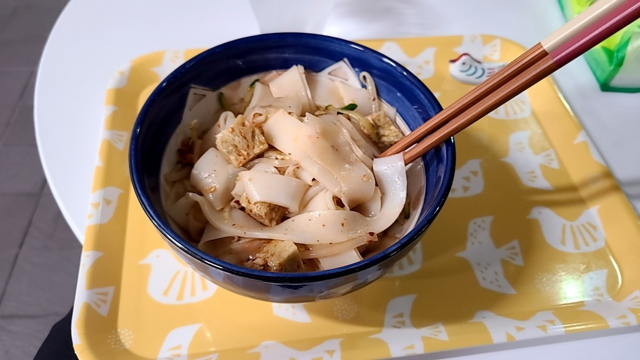 涼皮は分かりやすく例えるとキムチ味のきしめん(冷麺)